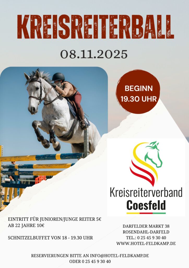 In diesem Jahr möchten wir mit Euch einen Kreisreiterball beim Hotel Feldkamp in Darfeld feiern.